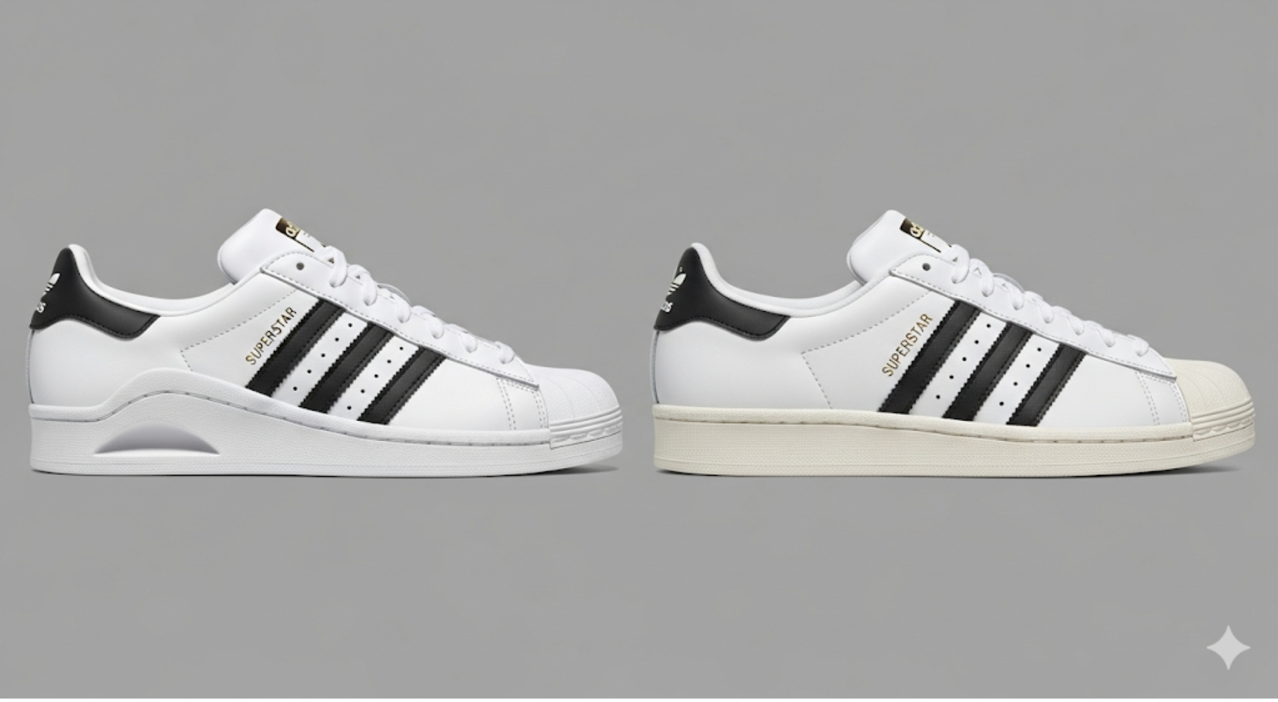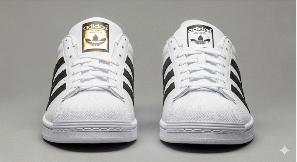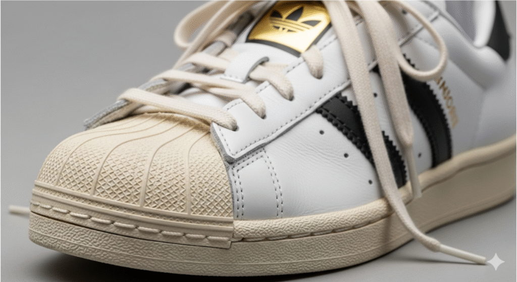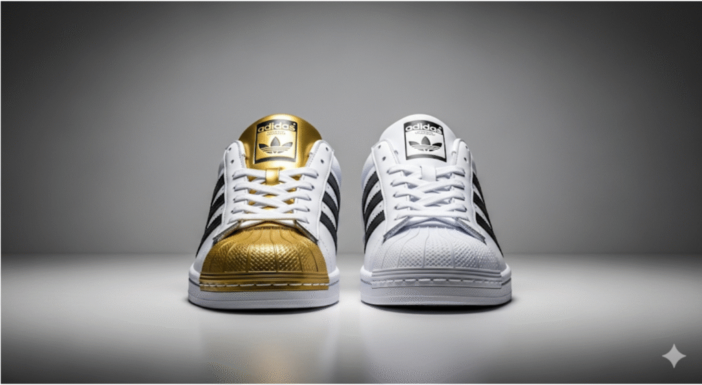 購入時には、単に「スーパースター」というモデル名だけでなく、シュータンのデザインが金色かどうかをしっかりと確認する必要があります。