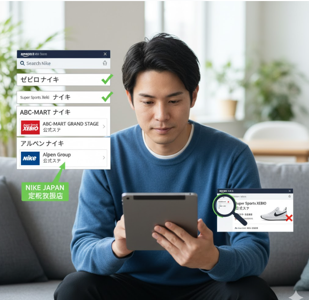 Amazonでナイキを買う時、私がいちばん安全だと断言できる方法は、「ナイキの正規取扱店」がAmazonに出している公式ストア(ストアフロント)から買うことです。