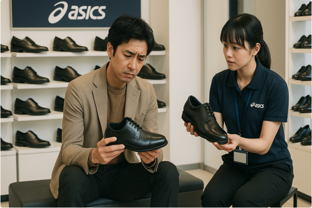 アシックスの革靴は、専門的な靴屋だけでなく、非常に身近な全国チェーンの靴店で試着・購入することが可能です。