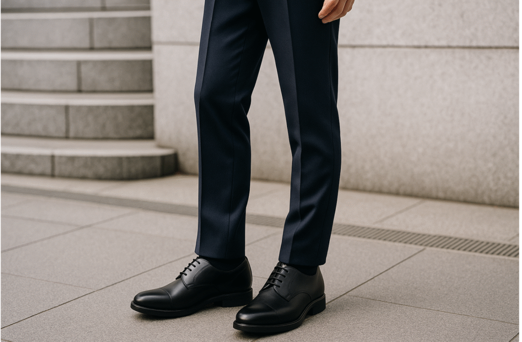 スーツの裾から覗く靴のシルエットが、一般的な革靴に比べてぽってりして見えることがある点は、認識しておくと良いでしょう。