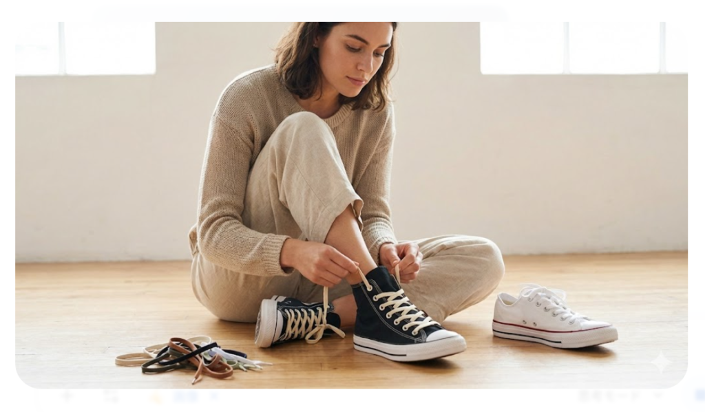 たったこれだけのアプローチで、あなたの足元の悩みは解消され、デザインも履き心地も妥協しない快適なスニーカーライフが手に入ります。