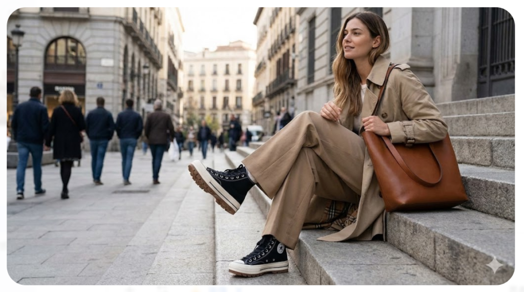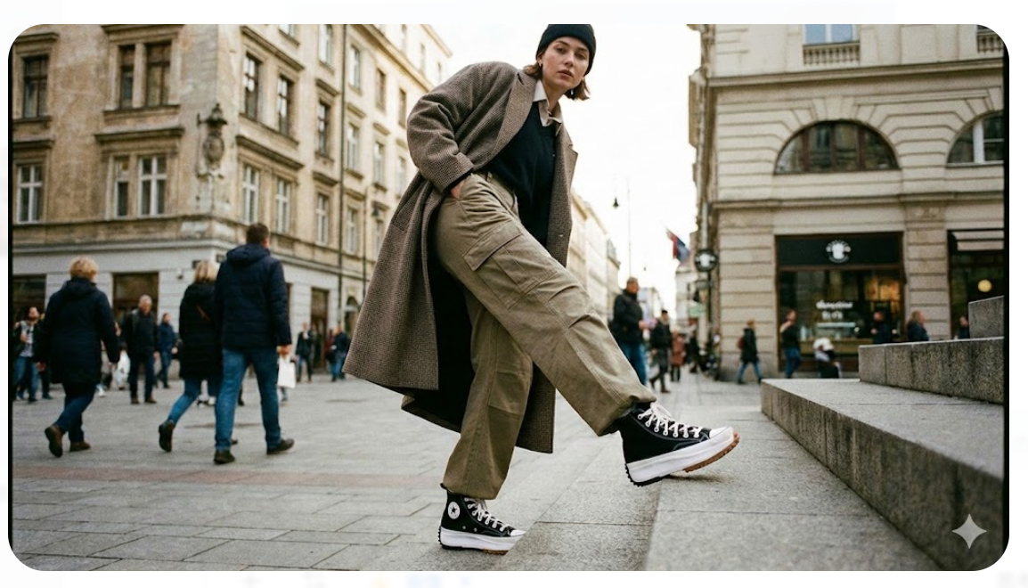 むしろ、大きめのサイズを選んで靴紐を限界まで締め上げる「デカ履き(オーバーサイズ着用)」は、靴のシルエットが縦に細長く見え、足元がスマートに決まるため、ファッション通の間では常識となっています。