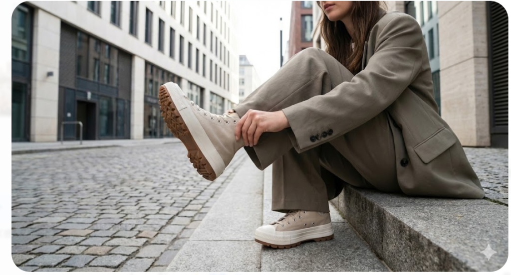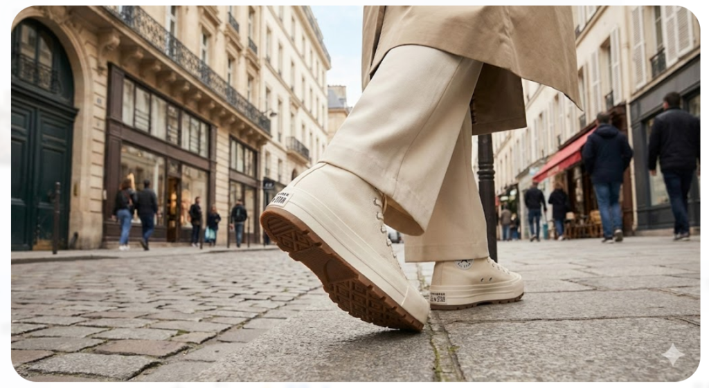 あのゴツっとしたトレッキングソールと、クラシックなオールスターの組み合わせ、一目惚れしてしまうのも無理はありません。私も発売当初、そのビジュアルに惹かれて即購入を決意した一人です。