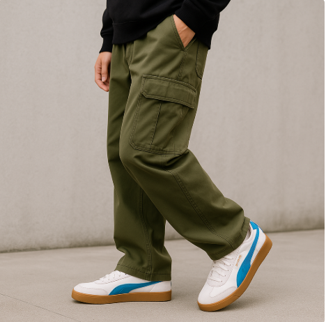 - ワイドパンツやカーゴパンツ: ゆったりとしたシルエットのボトムスと合わせることで、スニーカーのボリューム感と自然に馴染み、全体のバランスが整います。これが最も簡単で、トレンド感も出せる成功法です。
