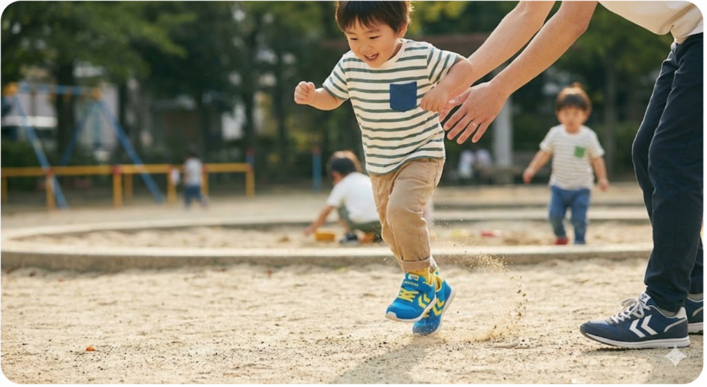 | サンドガード | 中敷きと靴の隙間をなくす構造で、公園や校庭の砂が入りにくい。「玄関の砂掃除が楽になった」とママさんから絶賛されています。 |
