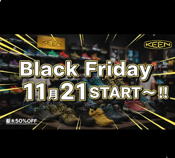11月の一大イベント、ブラックフライデーが近づいてきましたね。アウトドアからタウンユースまで大人気のKEEN(キーン)も、この時期はかなりお得になるので狙っている方も多いんじゃないかなと思います。