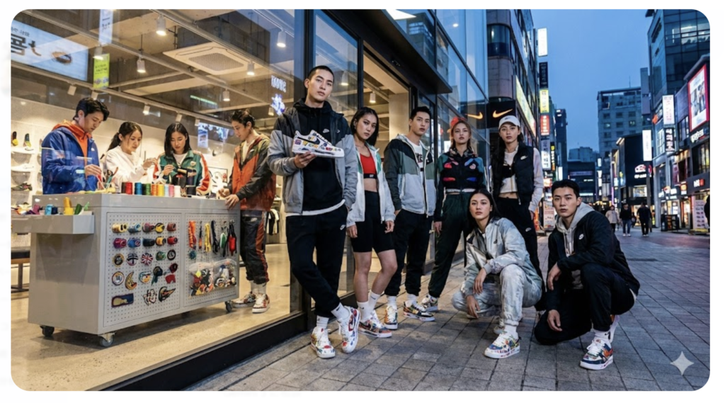特に韓国のナイキでカスタムスニーカーやアパレルを作る体験は、今や観光の目玉といっても過言ではありません。