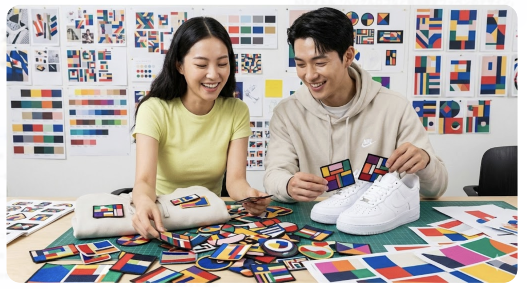 弘大店はワッペンのデザインが非常に個性的で、ストリートアートを意識したグラフィティ風のロゴや、弘大店限定のキャラクターワッペンなど、他の店舗では見かけないデザインが豊富に揃っています。