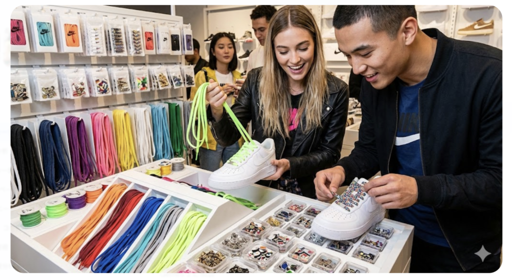 レジ横などで販売されている「デュブレ(靴紐のタグ)」や「限定シューレース」を購入するだけでも、手持ちのエアフォース1を韓国仕様にアップデートできます。
