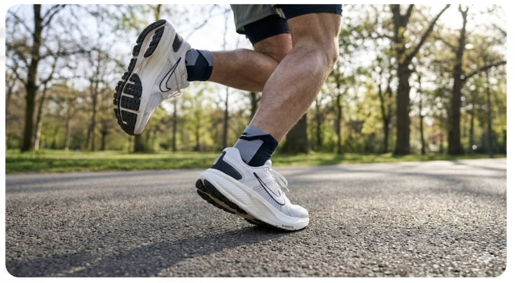 足が着地した瞬間にZoomXフォームがグニュッと圧縮され、その直後、足が地面を離れるときにはまるでスプリングが弾けるように、強烈な推進力となって足を前方へ押し出してくれます。この感覚は、一度味わうと病みつきになりますね。
