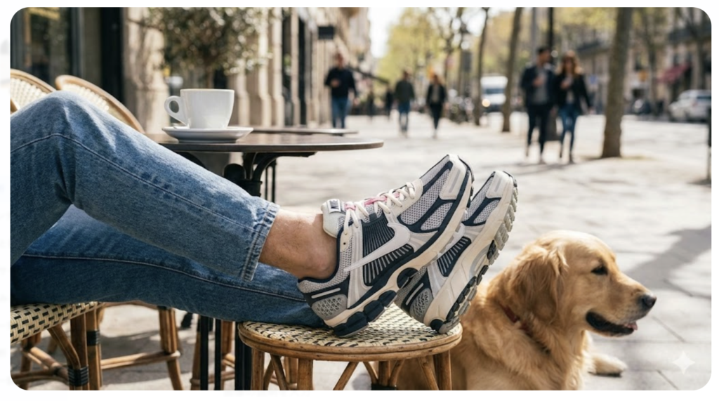 ボメロ 5は2010年代初頭のランニングシューズを現代に蘇らせた「復刻版」であり、現在は完全に「ライフスタイルシューズ(お洒落スニーカー)」として位置づけられています。