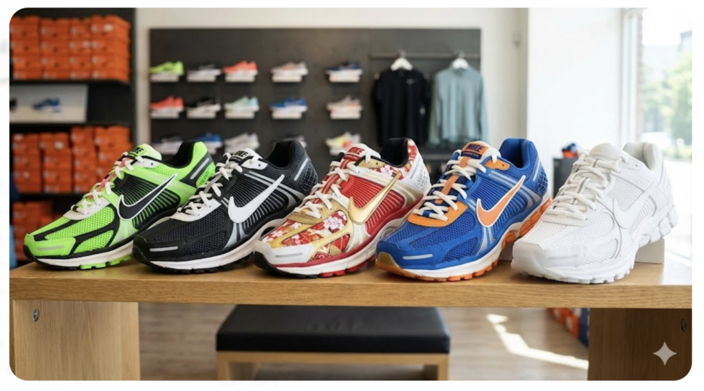 スニーカーショップやオンラインサイトで「ボメロ」と検索すると、必ずと言っていいほどヒットするのが「ボメロ 5(Vomero 5)」ですよね。