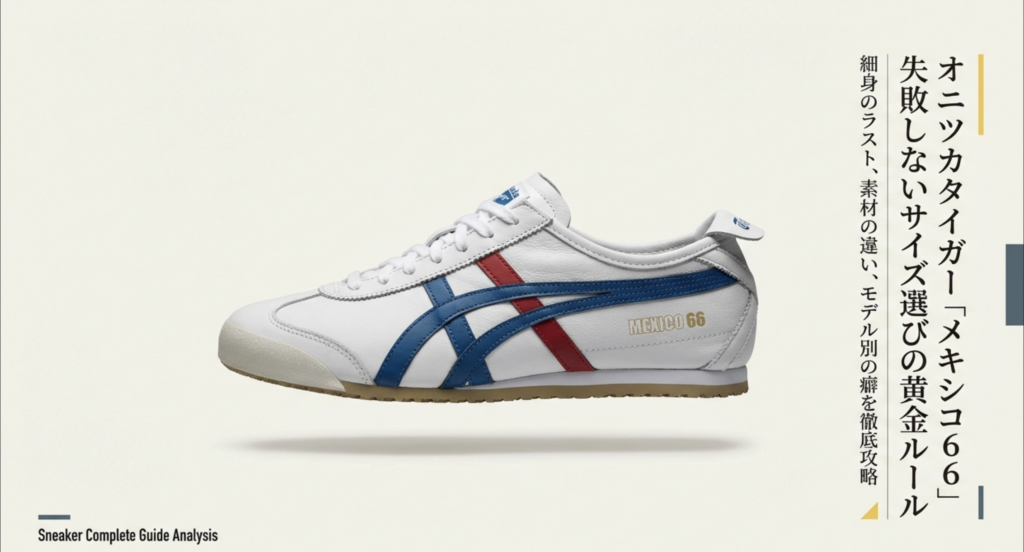 オニツカタイガーの象徴とも言えるメキシコ66は、そのスリムなフォルムが最大の魅力ですが、同時にサイズ選びの難所でもあります。