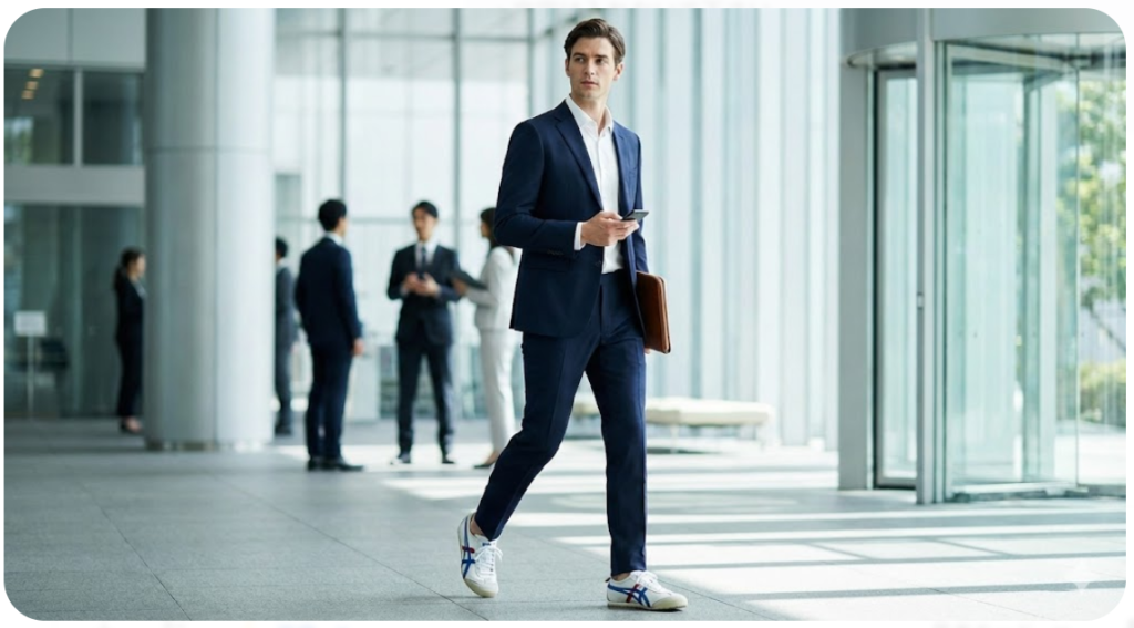 さらに、オニツカタイガーの起源やブランドストーリーを少し知っておくと、同僚との会話のネタにもなって楽しいですよ。