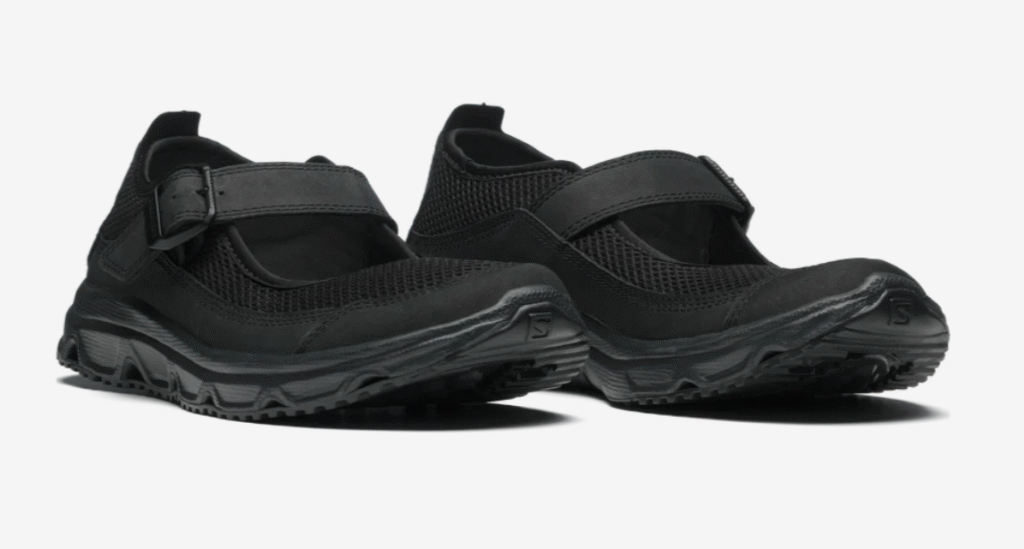 このモデルは、クラシックなメリージェーンシューズの象徴である甲のストラップデザインと、サロモンが誇る先進的なテクノロジーを見事に融合させた、まさにハイブリッドな一足と言えるでしょう。