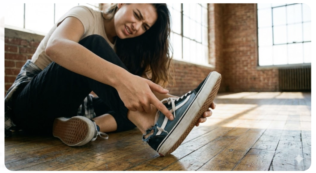かかと周りの痛みは「靴ずれ」だけじゃありません。内側のクッションが破れたり、ヒールカウンター(かかと芯)が折れたりすると、尖った部分が足に当たって一気に痛くなります。まずは原因を切り分けて、最短でラクになる方向に持っていきましょう。