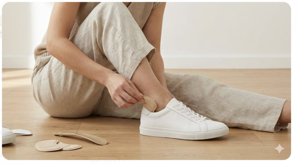 目的は「クッション」だけじゃなくて、足の動きを減らして摩擦を減らすことです。足が靴の中で動く回数が減るだけで、かかとの内側トラブルって驚くほど落ち着くことがあります。