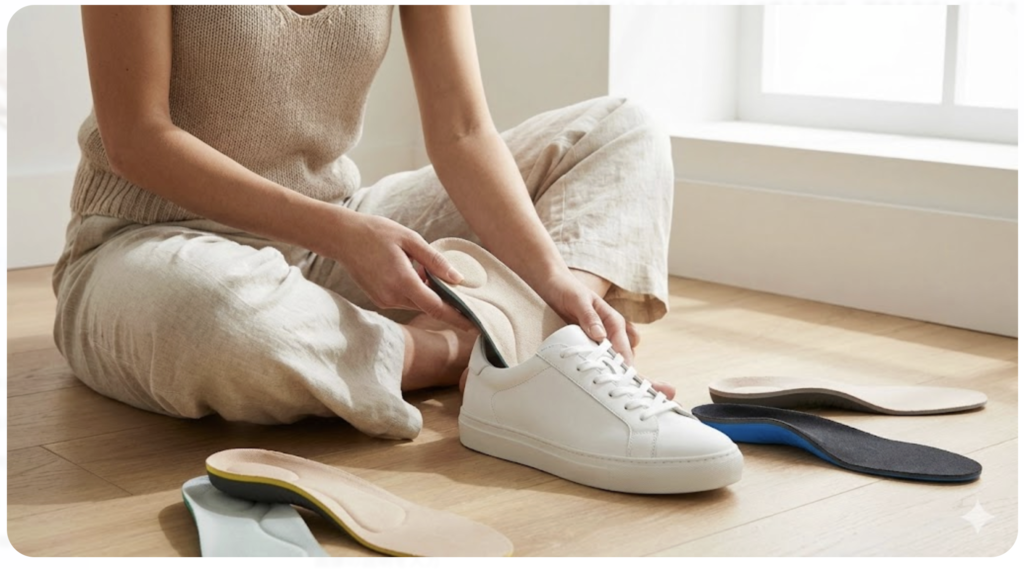 かかとが浮くパカパカや、靴脱げが絡んでいるなら、インソール(中敷き)でサイズ調整するのが効きます。