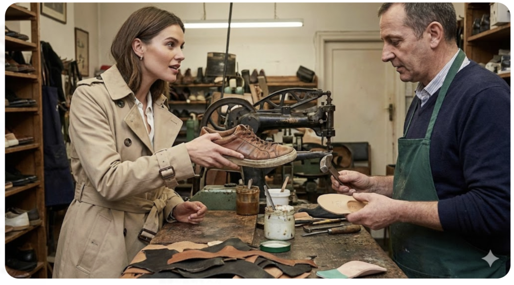 芯材(カウンター)が原因っぽい、内側の穴が大きい、グラグラして安定しない。こういうときは、靴修理店に相談する価値があります。プロなら内張り交換や補強、芯材の再形成など、DIYより確実な手を選べます。