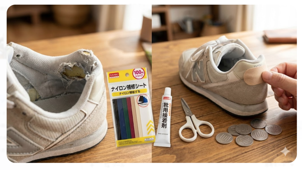 スニーカーのかかと内側修理にダイソーが最適な理由