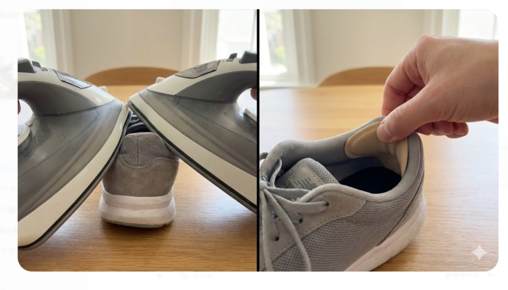 スニーカーのかかとという狭く入り組んだ立体的な空間に、家庭用のアイロンを正確に当てるのは至難の業です。