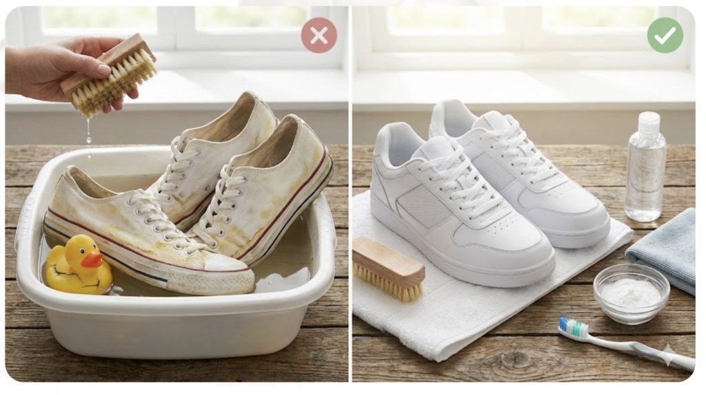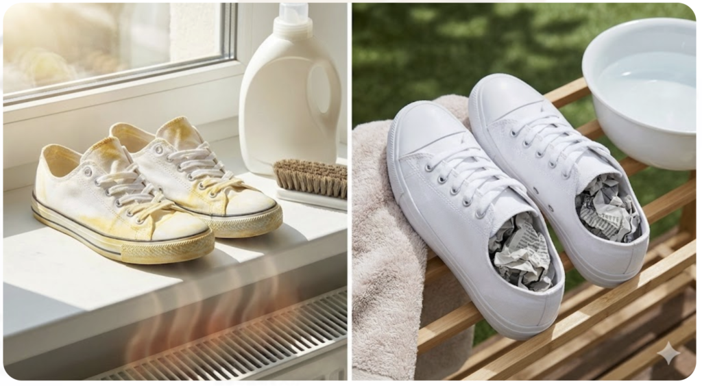 • 白いスニーカーの黄ばみは、すすぎ不足と乾燥ミス(熱・直射日光)を潰すと激減