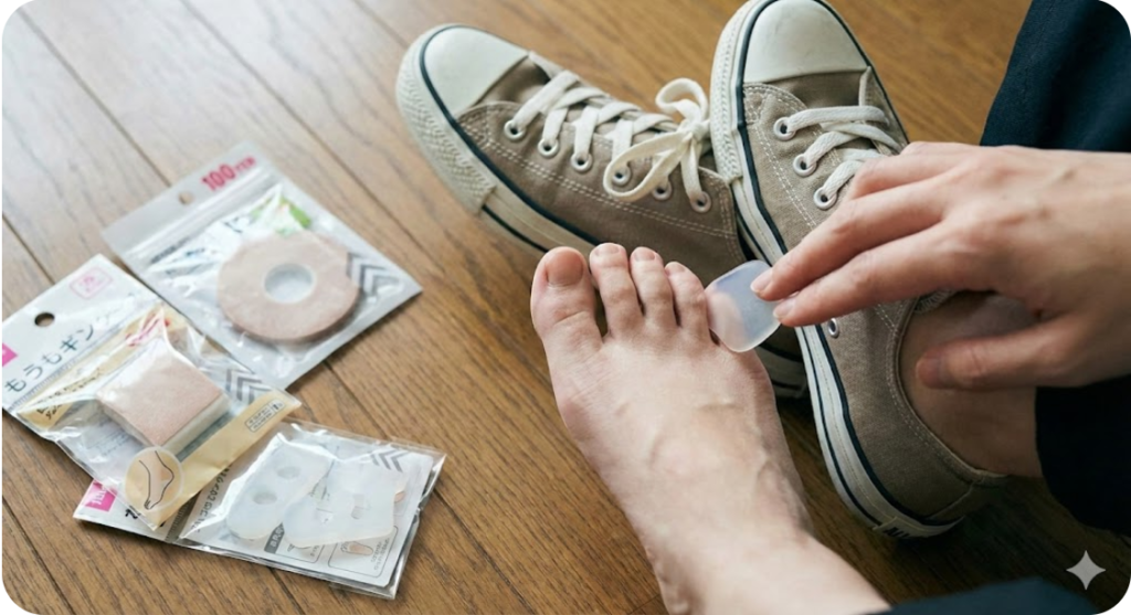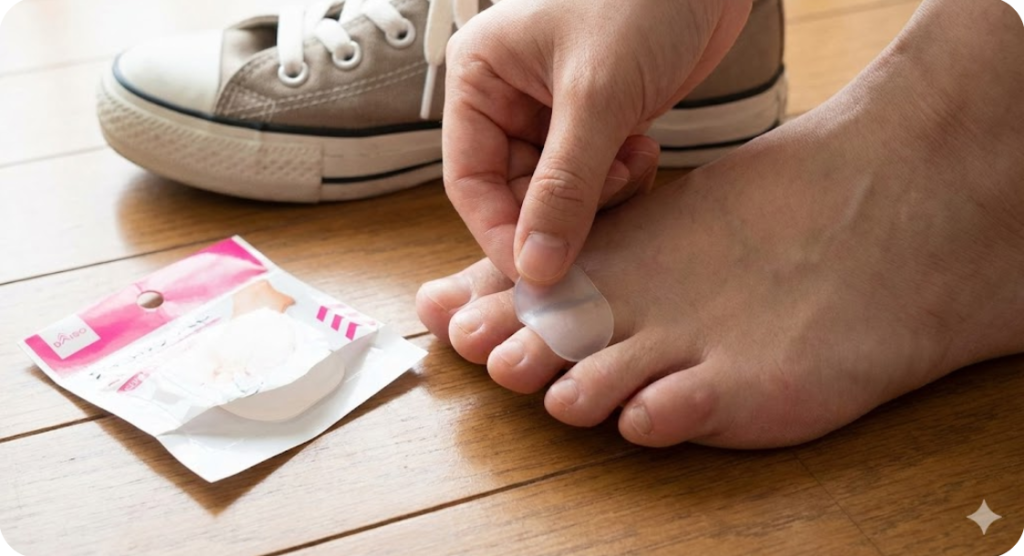クッション性はほとんどないため、骨が当たって激痛が走るような段階では力不足ですが、「長時間歩くと赤くなってヒリヒリする」「新しい靴を下ろす時の予防」というフェーズでは最強のアイテムです。