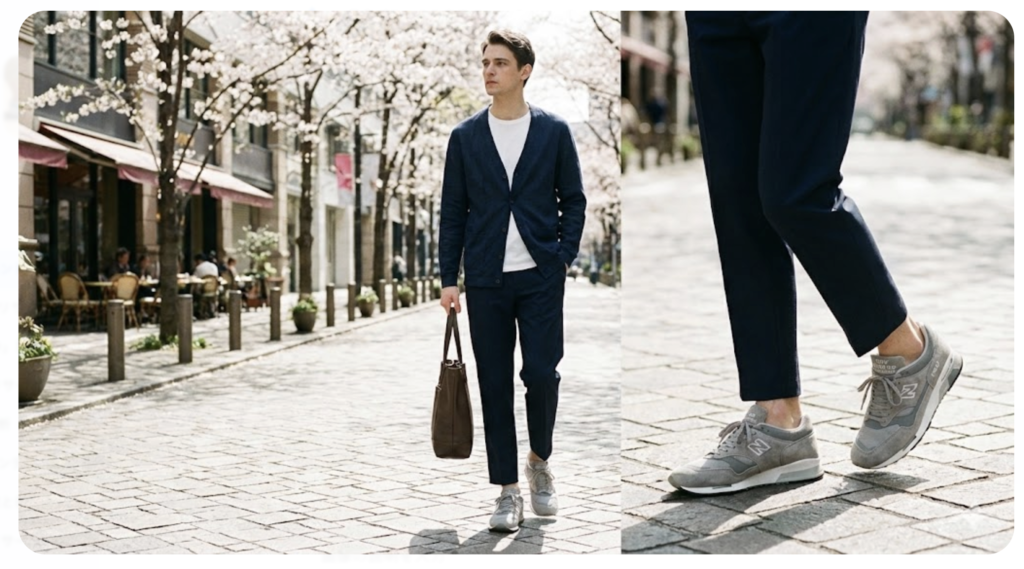 このように、スエードスニーカーを「革靴とキャンバススニーカーの間の第3の選択肢」として捉えることで、コーディネートの幅は驚くほど広がります。