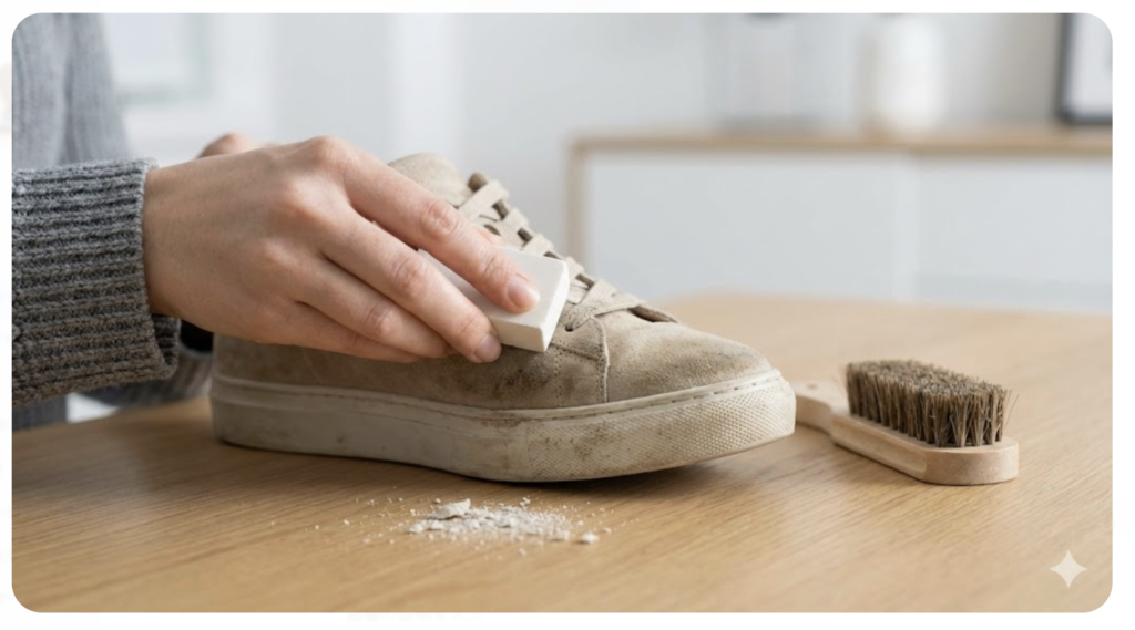 ここで活躍するのが「スエード用イレイザー(消しゴム)」ですね。これは、汚れをゴムの中に巻き込んで剥離させる物理的なアプローチです。