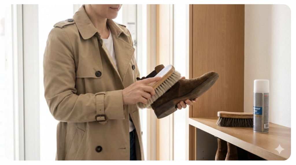 おしゃれなのはもちろんですが、私がグレーのスエード靴を「最強」と呼ぶ理由は、実はその「圧倒的な手入れの楽さ」にあります。