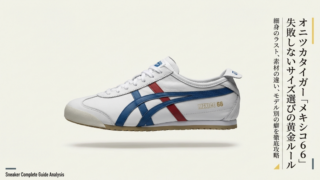 オニツカタイガー オニツカタイガーのメキシコ66のサイズ感を徹底調査!選び方のコツ オニツカタイガーのメキシコ66のサイズ感で悩む方へ、幅広や甲高でも失敗しない選び方を詳しく解説。他ブランドとの比較やスリッポン等のモデル別フィット感も網羅した充実の内容です。オニツカタイガーのメキシコ66のサイズ感の正解を知り、最適な一足を安心して手に入れませんか? 2026.01.25 オニツカタイガー