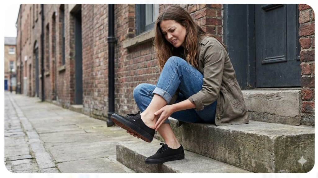 また、ソールが平らすぎると、ふくらはぎの筋肉を通常よりも伸ばした状態で使うことになるため、脚全体がむくみやすくなるというデメリットもあります。