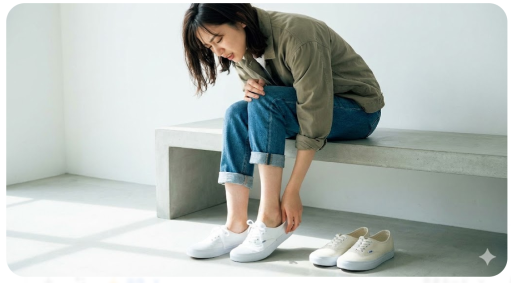 自分の正しいサイズを知ることは、疲労軽減の第一歩です。詳しい測り方やブランドごとの比較は、VANSのサイズ感を徹底解説した記事を参考にしてみてください。自分の足の特徴を知るだけで、靴選びが劇的に楽になりますよ。